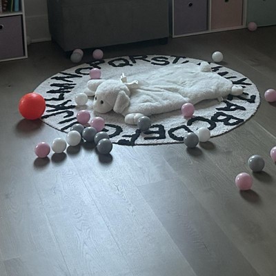 This alphabet rug is adorable in our playroom. Good weight and size for the value- looks much more expensive! Easy to spot clean and has held up well.