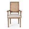 FRENCH COUNTRY INSPIRATION: From slender fluted legs to a sophisticated square backrest made with cane, this chair set offers a French country inspiration for your home. The elegant curves and armrests of this set draw influence from Queen Anne styling to bring your home together with a classic touch.