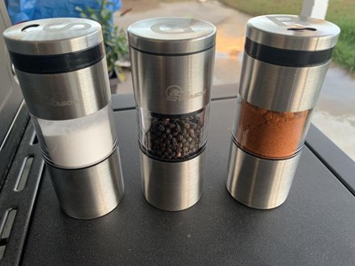 [This review was collected as part of a promotion.] I love barbecue. Not just the finished product but the whole process. It’s an art and every artist needs the right tools. I have been looking for a new spice set for my outside love affair and came across this set. First, the set is very well made. Beautiful really. It includes 3 separate shaker/grinders, one for Salt, one for pepper and one shaker for your own special spice concoction. I am in love with this set and now, I have my own so my wife stops getting angry when I forget to put hers back in the cupboard :) 100% recommend!