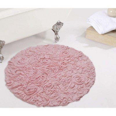 The Avanti Spring Garden Collection Bath Rug features a shaped peony in various shades of pink and white. Space-dyed yarns give it a heathered effect. Hand-tufted in 100% cotton for softness and performance. Measures 27" x 28" with a non-slip latex back. Coordinating towels, shower curtain, and bath accessories also available.