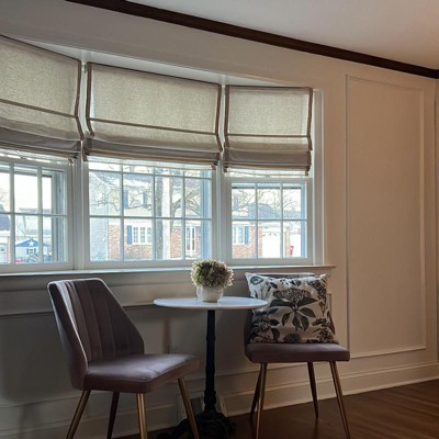 Add style to your window while filtering in natural light with this Cordless Roman Linen Blend Blind and Shade from Threshold™. This stylish roman blind brings a modern twist to your interiors. Made from a linen-blend fabric in a natural tone, it easily mixes with your existing decor. The light-filtering shade lets just the right amount of light in while enhancing privacy, while the cordless retraction mechanism makes it easy to open and close the window shade. You can install it in your bedroom, living room, kitchen or anywhere else to give your space a clean, contemporary look.