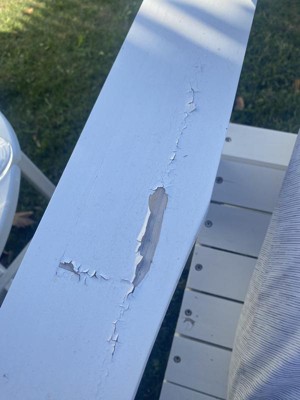 I bought these based on the excellent reviews and affordable price. I never write reviews but felt I had to for these to prevent others from buying. These are the most uncomfortable chairs, and are not full size adirondacks. They creak and snap any time someone sits in them. I knew they weren't real wood when I purchased, but I did not expect them to chip and peel within weeks of being outside. They are not durable or sturdy. Both arms ripped off the same week we purchased them as the nails provided weren't long enough to securely fasten them to the body of the chair. Sent a complaint in to Target and received no response. Waist of almost 200 bucks - will be disposing of immediately. Do not buy!!!