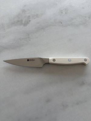 Sharp right out of the box and perfectly sized for everyday prep, the ZWILLING Pro Le Blanc 4-inch Paring Knife is a pleasure to use. It’s well-balanced, comfortable in hand, and ideal for peeling, trimming, and detail work. The blade holds its edge well, and the white handle looks great while providing a secure grip. A reliable, high-quality knife that performs exactly as expected.