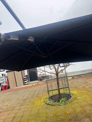 [This review was collected as part of a promotion.] Very durable, good material, cover big area but you have to bolt in something other wise it will fall off because umbrella too heavy, very easy to set up.