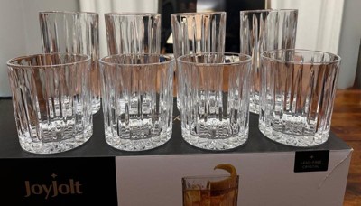 [This review was collected as part of a promotion.] I am absolutely in love with these beautiful JoyJolt Stella Highball Glasses. They are stunning. Especially with a lovely sparkling drink in it. This set comes with four crystal glasses. 14 oz glasses. Very easy to clean. I love to pull these out while having friends over for drinks and snacks. Wonderful quality and looks great and high class. It's the perfect serving size. Everybody just loved them also. No heavy and easy to hold. Perfect for any gathering.