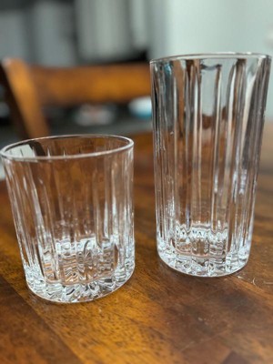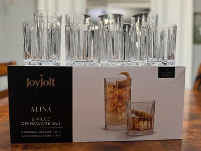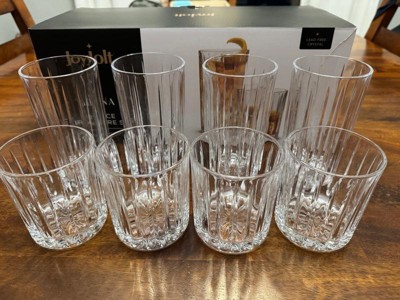 JoyJolt Alina 8 Piece Ribbed Glass Drinkware Set - 12oz Rocks Glasses and 14oz Highball Glasses. Cocktail Glasses,