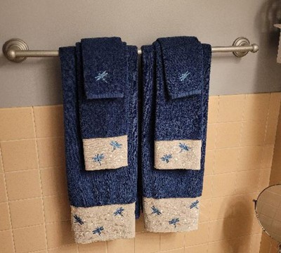 Fell in love with the dragonfly embroidery! There are so many lovely colors to choose from so I bought teal and navy that I mix together . The terry towel quality is thick & absorbent. Adore these pretty towels!