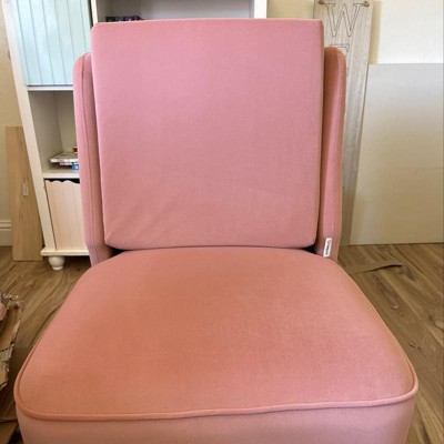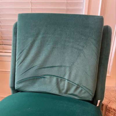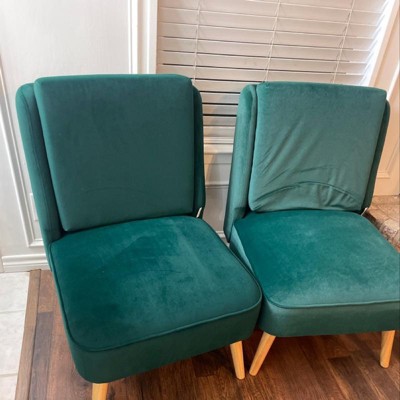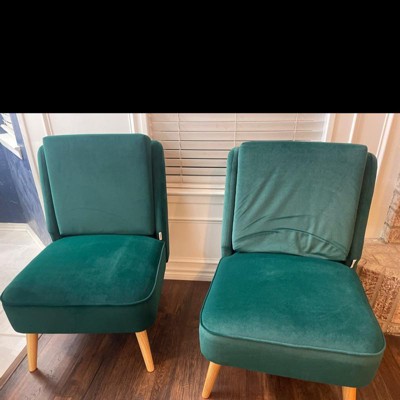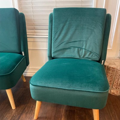 This armless accent chair is your good partner in daily life and provides a great place for you to relax. It features an ergonomic backrest which can support your back perfectly and release the pressure. Covered by velvet fabric and filled in thick sponge, this chair will offer you a comfortable sitting experience. In addition, the solid construction with pine wood frame and rubber wood legs ensures the durability, sturdiness and strong load bearing. There are non-slip foot pads on the bottom of legs, which will improve stability and protect your floor. This accent chair is suitable for living room, bedroom, office and other places. Don't hesitate to take it home!