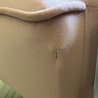 The chairs are beautiful. Exactly as pictured, the reason for the 4 stars is that almost half the legs were stretched (not a big deal, but they were bubble wrapped and in a separate little box) and one of the chairs was damaged. The seat and head rest had small tear on fabric. It’s hidden once you put the two pieces together. I take good care of my furniture so we’ll see how long this will last. I might put fabric glue to keep it from getting bigger. Other than that, they look and feel pretty good.