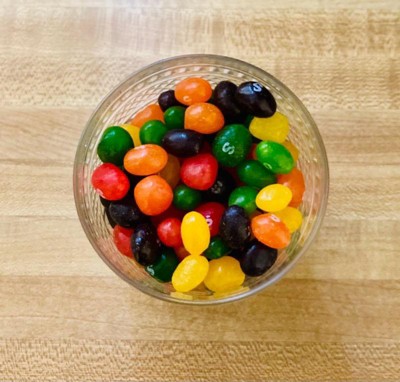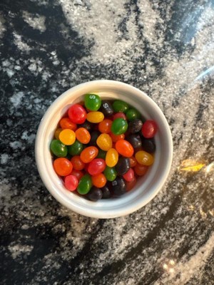 [This review was collected as part of a promotion.] These are so fun! They’re the perfect mix of a skittle and a jelly bean. They’re not too sticky on your teeth and have great flavor. I’d definitely purchase these. Great value.