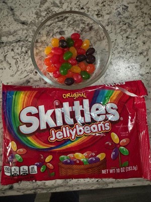 [This review was collected as part of a promotion.] Original skittle jelly beans are fun and colorful, perfect for Easter. You get a mix of fruity flavors like strawberry, orange, lemon, lime and grape and they all have the bold skittles taste. The texture is soft and chewy without it being sticky.