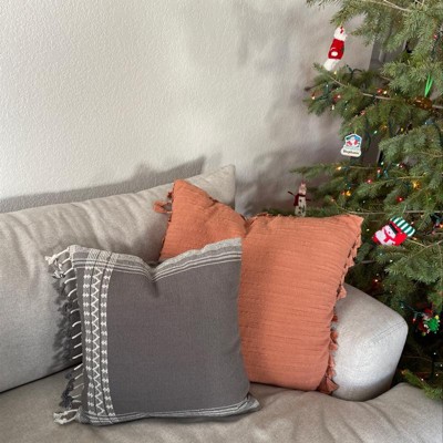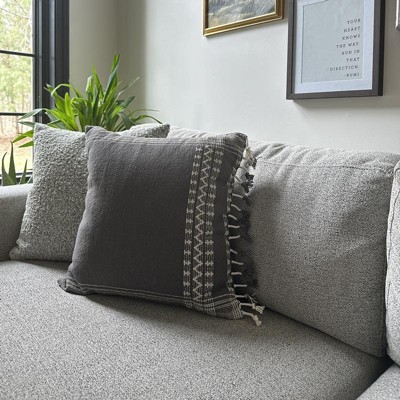 Square Woven Pattern Tassel Decorative Throw Pillow Natural - Threshold™: Cotton & Wool Blend, Indoor Knife Edge Pillow