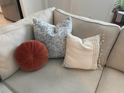 Saw in store and grabbed it right away. Great to mix and match for my new entry way bench. My sofas are grey and this pillow picks up the cream of the bench and linen of the tabletop lamp shade. I just wish it was softer and looks like it could easily pick up some lint. So far so good though as it’s really only meant for decor only