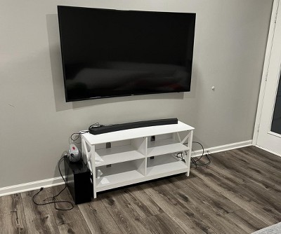Large Storage Space: Our TV stand is the perfect home storage solution. The tabletop is spacious enough to accommodate TVs up to 55''. Four open compartments allow you to access items without obstacles, while providing enough storage and display space for books, DVD players, game consoles and other items.