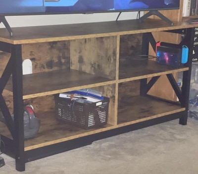 This is a very decent plywood tv stand and perfect size for my 55 inch TV. It\'s pretty easy to assemble and instruction is very clear. It looks great once all put together and looks very sturdy too. I really love the generous storage area and fit lots of stuff inside .If you are looking for a budget friendly entertainment TV stand without spending lots of money, l think l will highly recommend this one .