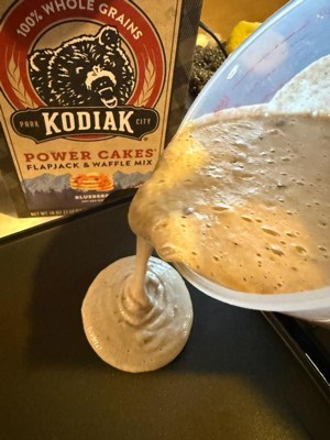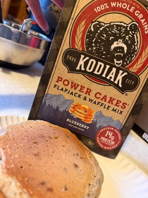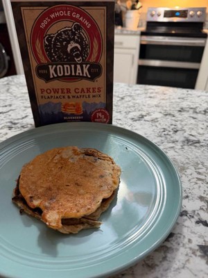 [This review was collected as part of a promotion.] Our family LOVES pancakes so getting the chance to try these I knew would be a hit with them. Starting with portions used the whole box as a family of 6 and each person got 2 regular sized pancakes with a few extra. Right from the start you could tell these were blueberry. It smelled so good just mixing them. You could see the blueberries in the batter as well. They cooked perfect and the family agreed they were flavorful. We added some fresh blueberries too but kids took them all before I could get a photo. They’ve even request some blueberry syrup for next time. They now want to try the chocolate and the fun recipes on the back. Thanks Kodiak and Influenster for the chance to try this product.