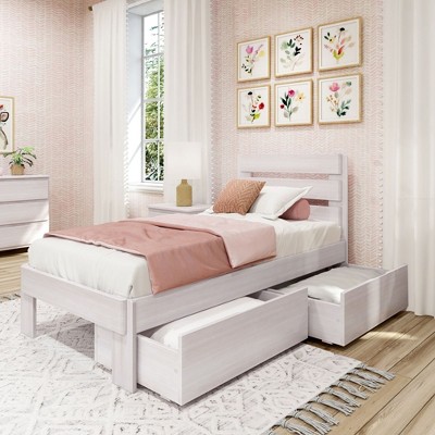 Max & Lily Twin Bed Frame with Panel Headboard, Modern Farmhouse Solid Wood Platform Bed