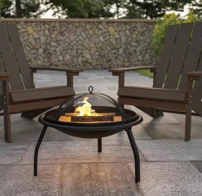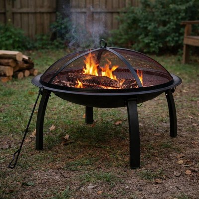 Merrick Lane Fire Pit 22.5" Iron Folding Wood Burning Outdoor Fire Pit For Patio, Backyard, Camping, Picnics With Spark Screen And Poker