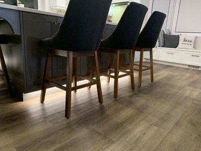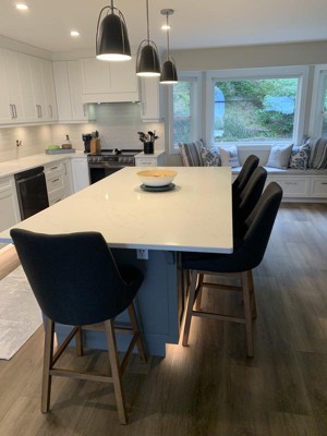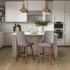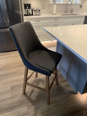 Pull up a seat to your kitchen island and enjoy your meal in comfort and style. These counter height bar stools feature a formed high backrest and armless design allowing for multiple seating options. The foam-padded upholstered seat offers comfort and support and the cushion can be removed for easy cleaning. Finished with dark brown rubberwood legs this bar stool is durable and stylish. This clean and classic design is a perfect addition to any kitchen.
