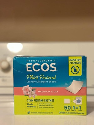 I like many Ecos products but not their laundry sheets. The good thing about laundry sheets is no plastic, but these sheets did not clean my laundry nearly as well as other sustainable, eco-friendly laundry detergents. Also, I was disappointed to see this product contains sulfates (even though plant-based, they can still harm the environment). Should have read the ingredients' list before purchasing but did not think to do so since it was an Ecos product and I trusted them. Will not purchase again and do not recomment.
