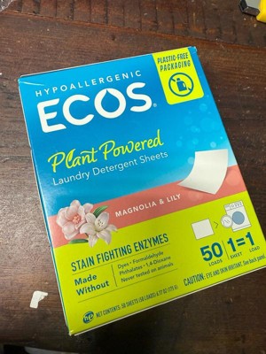ECOS Laundry Detergent Sheets - Magnolia & Lily - 7.9oz/64 loads: Hypoallergenic, Dermatologist Tested, Household Sheets