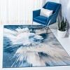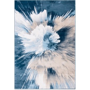 Our rug showcases a dynamic explosion of colors, featuring an abstract design that mimics a blossoming floral motif or a cosmic burst, radiating from the center. The harmonious blend of beige and blue hues creates a soothing yet vibrant atmosphere, making it a versatile addition to any room, from sleek urban lofts to casual family rooms.