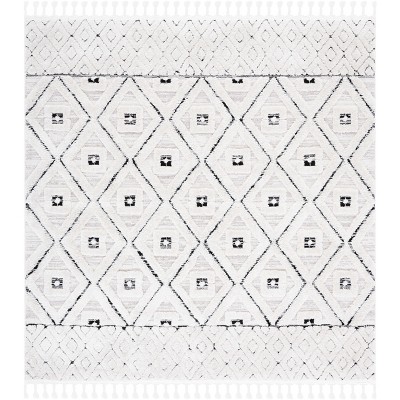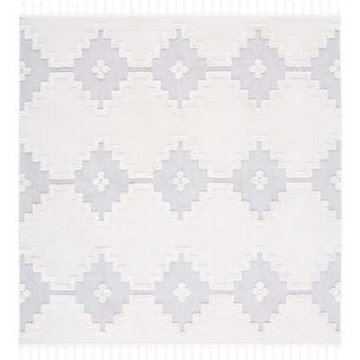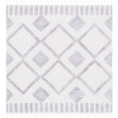 Cute rug. Exactly as pictured. 5x5 size was exactly what I was looking for. Very soft and cozy to step on. I had wondered if the raised design would be uncomfortable to step on- nope you can’t tell you’re even walking on the raised bits. Taking a star off because the tassels already look bad after just 2 times vacuuming. May cut them off. Will update once I need to clean it.