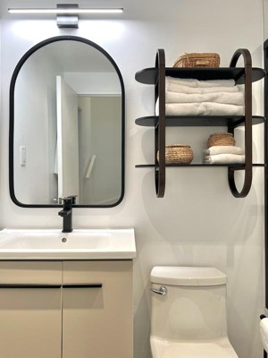 Umbra 24" x 36" Hub Arched Decorative Wall Mirror Black : Modern Rubber Rim, No Assembly Required