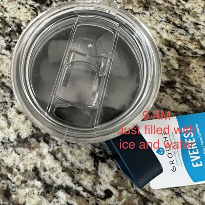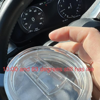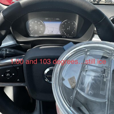 I did an ice test on this mug and it kept ice for several hours while sitting in my hot car. Here are my thoughts. Pros: The mug looks great. It feels great. Kept my drink cold. Cons: too big for any of my Volvo xc30 cup holders. Overall, this is an excellent mug for working at a desk. But don’t plan to travel with it if you have small cup holders.