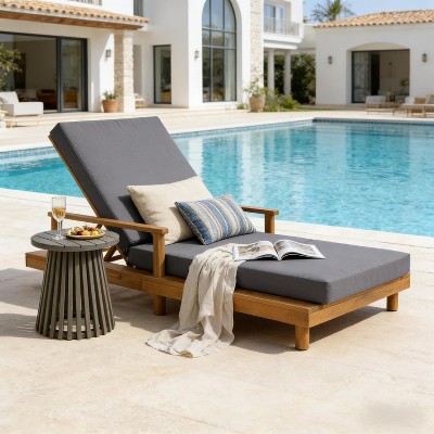 Kinzie Outdoor 2 Seater Acacia Wood Daybed with Adjustable Chaise & Water-Resistant Curtains - Christopher Knight Home