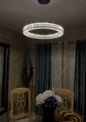 After a long search, I purchased the Eternity pendant for our dining room. The design was perfect for our setting. It was easy to install and the YouTube video on the manufacturer’s website help us through the process. The LED light gleamed through the crystals cast so elegantly. It work great with the dimmer switch I had previously installed in this area. And the price point was affordable.