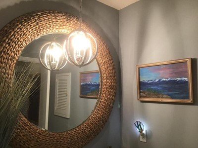 Be aware that the ring that sits just below the bulb is not fixed to the lamp. We were putting a new light bulb in and the ring fell down the sink drain. Plummer cost more than the lamp.