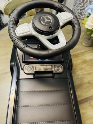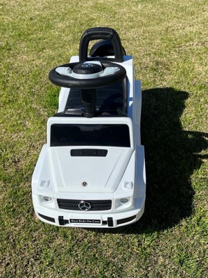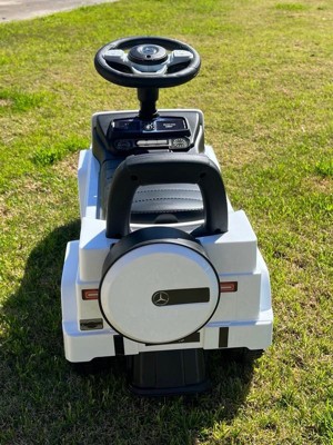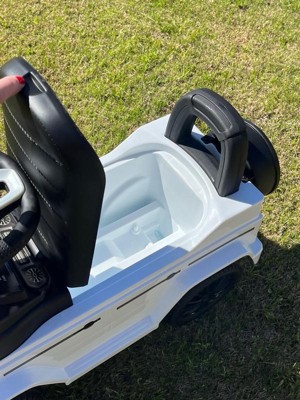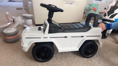 [This review was collected as part of a promotion.] "My grandson is absolutely thrilled with his Mercedes G-Wagon Push Car in White! As his grandma, I have to say, it was a breeze to assemble – everything we needed, including stickers, was included. The coolest feature? The horn, powered by 2 AA batteries (not included), which emits fun sounds that he adores. But what truly impresses me is its functionality. The steering wheel allows him to maneuver effortlessly, aiding in his walking development. And let's not forget the hidden trunk under the seat – his favorite spot to stash all his toys! I love that it's versatile enough for both indoor and outdoor use, thanks to its heavy-duty plastic wheels that never go flat or scratch my floors. Plus, its durability means it can withstand even the roughest play sessions. This push car has quickly become his go-to toy, keeping him happily entertained for hours on end. It's safe to say it's a winner in our household!"