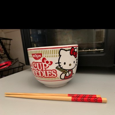 Silver Buffalo Hello Kitty Cup Noodle Japanese Dinnerware Set | 20-Ounce Ramen Bowl, Chopsticks
