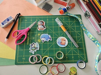 [This review was collected as part of a promotion.] Great craft mat! Smaller compact size so it's easy to take with you whenever you're on the go. My kids have claimed this for themselves lol it's a great mat for crafting. The perfect size for their card-making and sticker-making hobby. One thing I wish is that the sticker label didn't come attached to the actual board. I wish it was on the outside of the packaging. I've already washed the mat twice with warm soapy water and it washes off fantastic it ever gets dirty. Overall I recommend it!