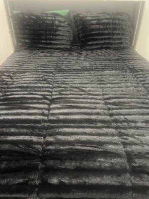 [This review was collected as part of a promotion.] This comforter set is absolutely stunning the black faux fur adds the perfect glamour to my bedroom. The size is perfect and fits my bed great. Very nice quality and comfortable absolutely love it!
