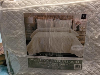 3pc Full/Queen Avon Textured Ruffle Quilt Set White - Lush Décor: Microfiber, OEKO-TEX Certified, Includes Shams