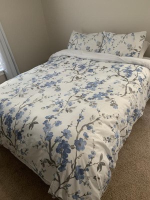 3pc Full/Queen Kasumi Floral Duvet Cover Set Blue/White - Cannon: Polyester, Woven, 180 Thread Count, Button Closure