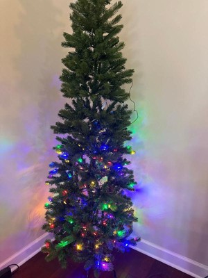 • PERFECT HOLIDAY DECOR: Pre-lit Christmas tree that is 6.5 ft and has a narrow diameter makes this pencil slim tree ideal for tighter rooms, corners or apartments (Dimensions: 30”L x 30”W x 78”H)
