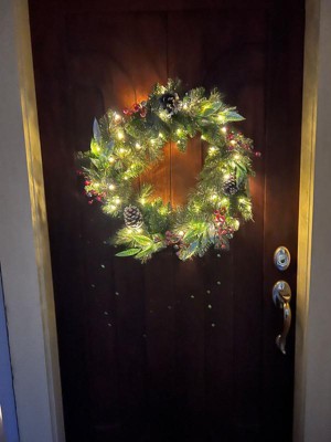 24" Prelit Flocked Christmas Wreath with Cones and Berries White Lights - National Tree Company