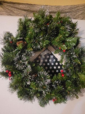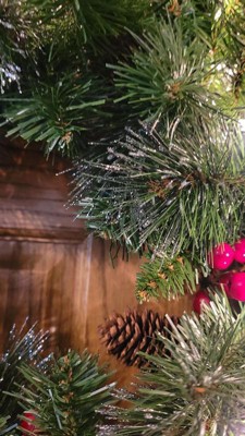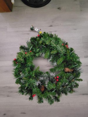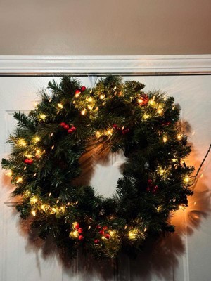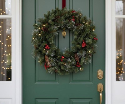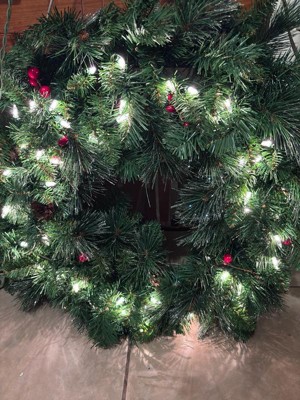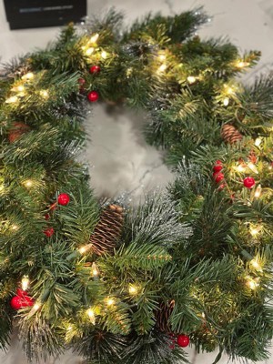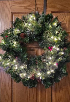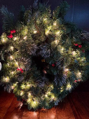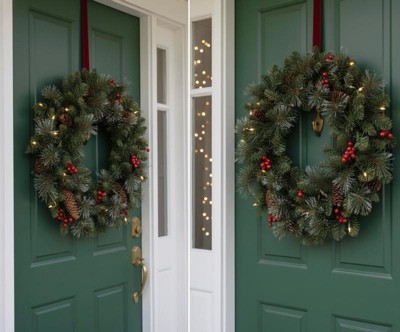 [This review was collected as part of a promotion.] This wreath is beautiful and festive, with pine cones, berries, and glitter for a classic holiday look. The clear lights shine brightly and stay lit even if one goes out, making it a perfect decoration for doors, walls, or windows.