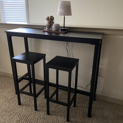 I needed a compact yet tall table for my studio apartment. This worked perfectly! It’s stylish, sturdy, and can be used for multiple purposes. I am going to buy a couple of stool covers to make the seats a little more comfy. Overall, I am very pleased with this purchase!