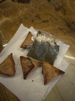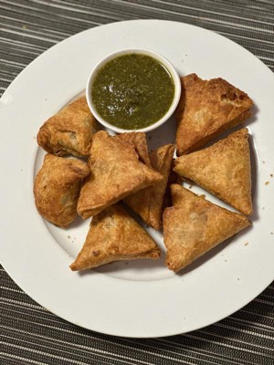 Pretty good tasting. Great texture when done in the air fryer. The samosa was more crust than filling and a bit too much carbs. The worst part was the two ounces of flavored water called dipping sauce. The ten ounce package is actually only eight ounces of samosas and two ounces of sauce.