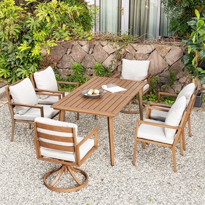 Lucca 7pc Dining Set with Cushions: Weather-Resistant Polypropylene, UV Protection - DUKAP