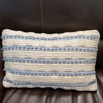 Really like the look of this pillow and detail in the yarn. Blue is a really pretty color and the off-white goes with everything. I’m not sure I wouldn’t describe this as oversized, but it’s got a little plump and is comfortable.