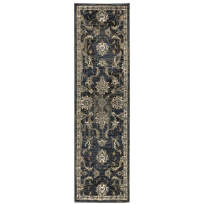 2'3"x7'6" Victor Modern Abstract Runner Rug Blue/Gray - Captiv8e Designs: Low Pile, Machine Made, Indoor Use