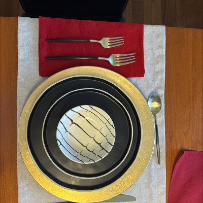 [This review was collected as part of a promotion.] I saw these online and ordered them. I was awwwd by the just seeing them the minute I opened the box . The color combination is on trend and quality wise all they are awesome . Each piece is finished with a finesse and they are light weight as well . I always worry heavy spoons and knife makes it difficult to hold while eating but these ones and light and check off the box on my list . Highly recommend!!!