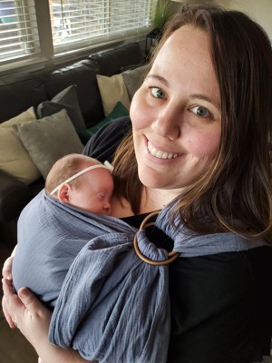 I’m not sure what it is about the sling, but the fabric either slips around too easily… or the rings are too slippery. I can still use the sling, but sometimes it feels not very stable. I wonder if a nicer brand would work better! It’s also not quite as soft as I was hoping.