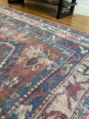 I really like this rug. The colors are authentic and look vintage. My only criticism is the binding. It is salmon and stands out where you focus on that first. I wish they had used a neutral darker tone more like an oriental rug.