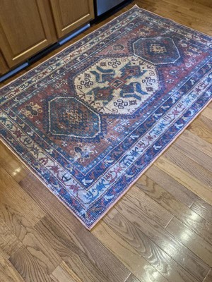 Nourison New Concept Washables 2' x 3'9" Red Navy Vintage Indoor Non-Slip Flatweave Rug